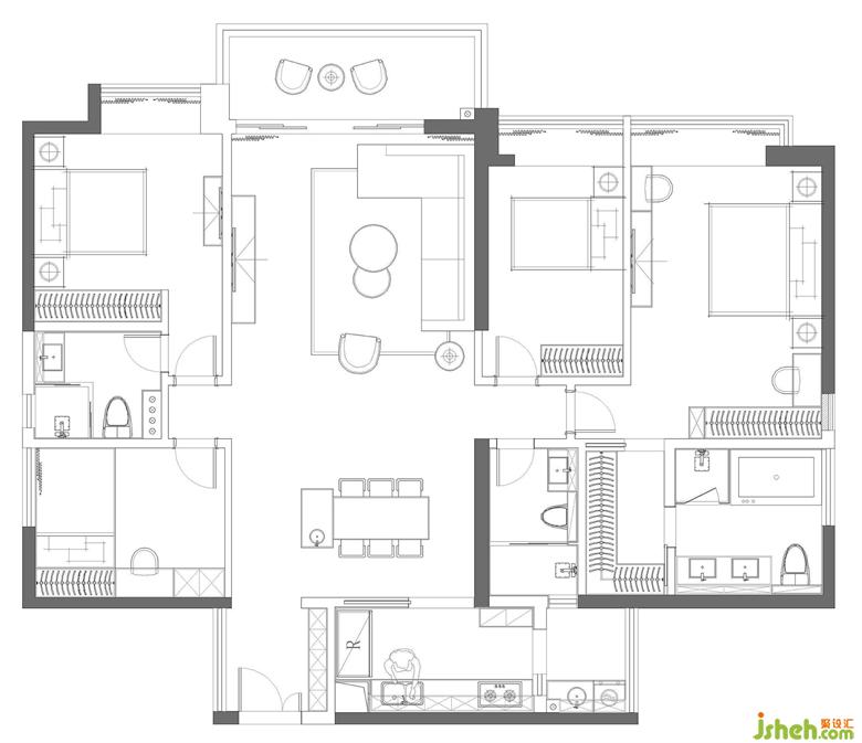 ?女業(yè)主偏愛極簡(jiǎn)、侘寂的風(fēng)格,想讓空間盡量開闊、通透,不喜歡過多的裝飾,也不需要太多收納,每個(gè)房間有一排衣柜足以。材料想用微水泥,便捷度和環(huán)保性都較高。