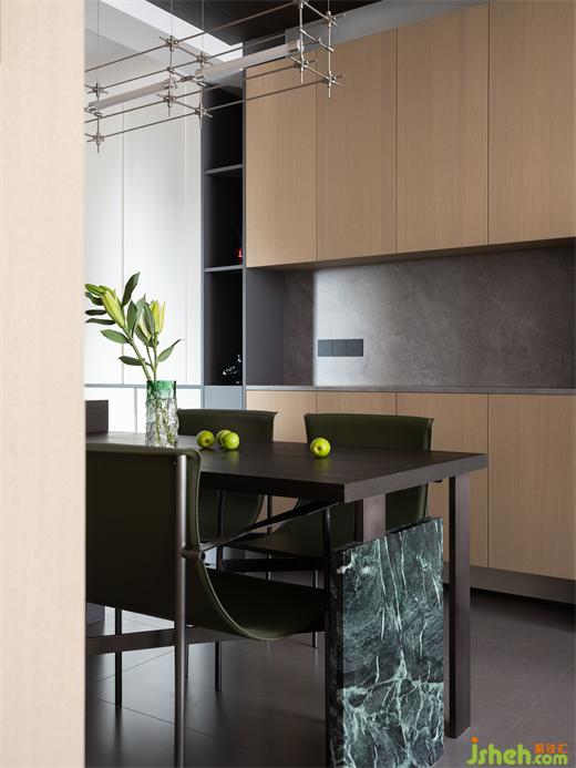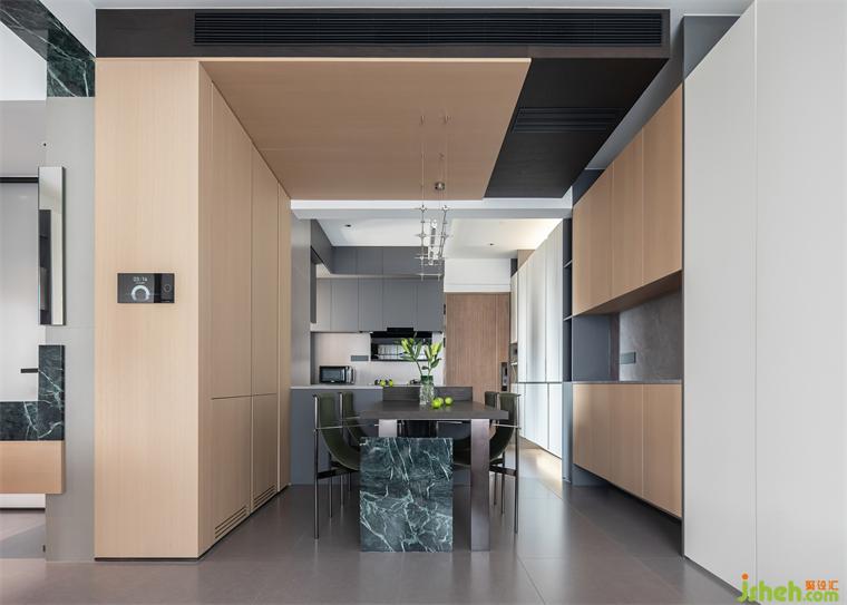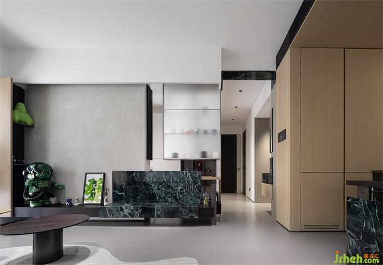 4、普拉達綠大理石,巧妙融入空間的設計與結(jié)構(gòu)當中,增加體量感與質(zhì)感。