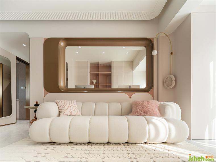3、主臥床頭背景墻后移,床180調轉,解決主衛(wèi)門正對床頭的問題;床尾利用門后空間放置衣柜,巧妙提升收納功能。