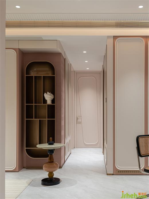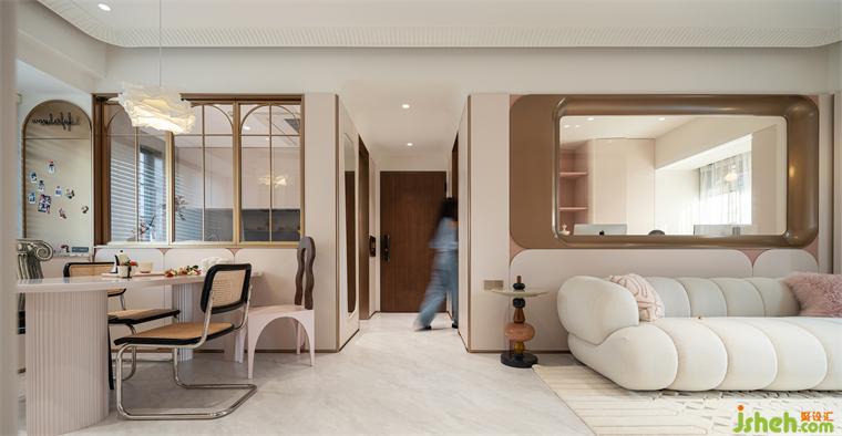 1、四房改三房,將原本采光一般的臥室打通設計成書房,以可視化設計與客廳相連,兼顧辦公休閑與互動交流。