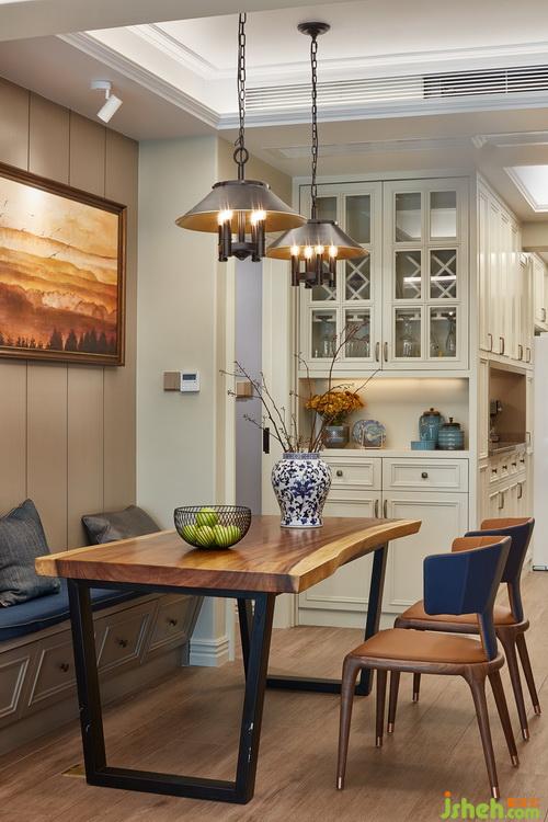 廚房外的走廊上的整排柜子收納,足夠存儲干貨等物品。在這里煮咖啡、榨果汁、泡茶統(tǒng)統(tǒng)實(shí)現(xiàn)。