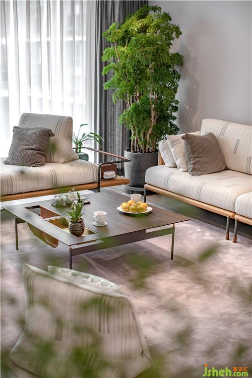 在白色的空間里,綠色顯得特別的耀眼。斑駁的影子,給客廳帶來渾然天成的藝術(shù)美感。