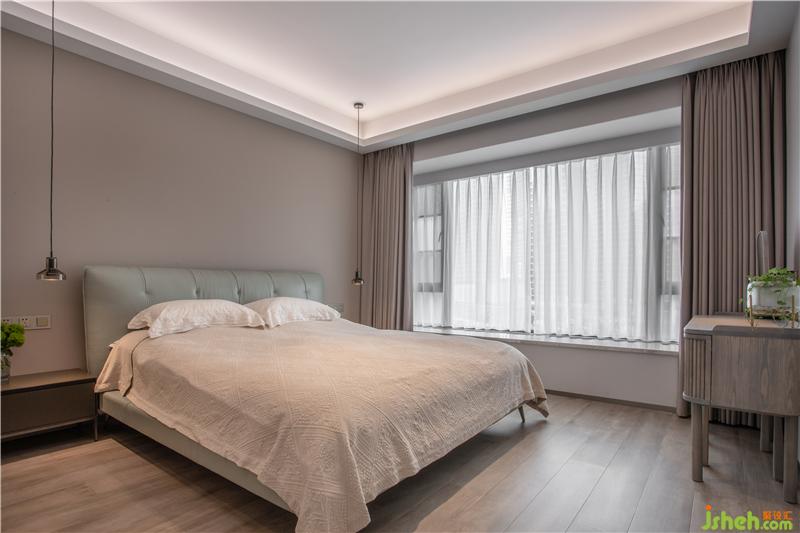 主臥也是極度的簡潔,灰與白的世界,不惹一絲塵埃,除了必要的床褥、衣柜、梳妝柜等必要物什深圳室內(nèi)設(shè)計(jì)師,再無其他無必要的裝置,甚至干凈得連一副裝飾畫都沒有。