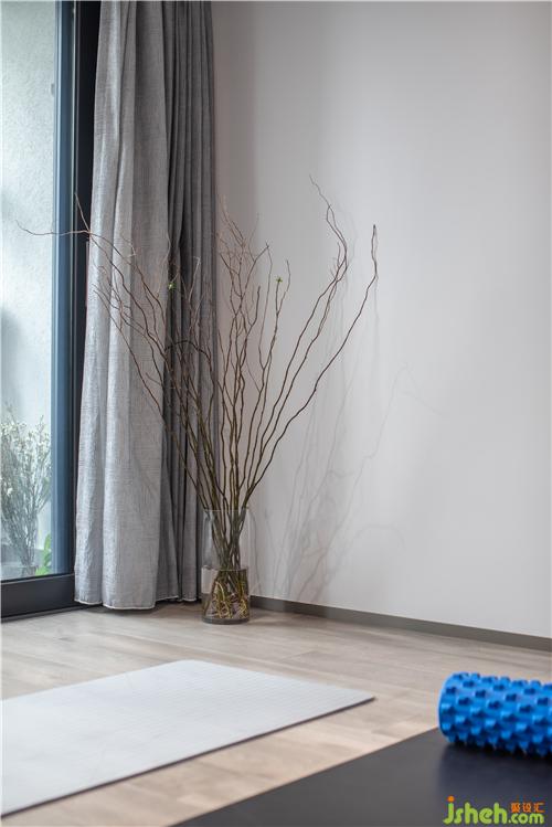 女主人平時(shí)喜歡做做瑜伽或者普拉提,所以特意設(shè)計(jì)了一間運(yùn)動(dòng)室。這里連接陽臺(tái),做了立地窗的設(shè)計(jì),讓主人可以一邊運(yùn)動(dòng),一邊看著窗外的自然景色,更加的放松身心,享受生活。