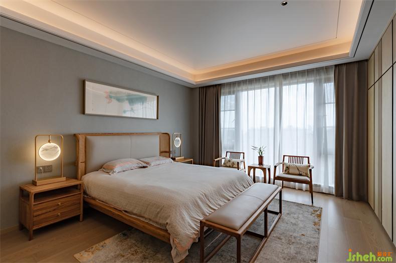 山河墨卷以各種形式連綿在空間里,一幅畫作、一種材質(zhì)的紋理,室內(nèi)設計師甚至餐桌細節(jié)處,對應窗外,仿佛自然沒有了界限。中國人自古就寄情于山水,哪怕寥寥幾筆足以將內(nèi)心的思緒借以表達,主臥便是如此,簡雅為上,自然包裹,讓人不由而然的放松下來。床頭燈似玉映照山澗,荷花影朦朧清麗脫俗,藤珊巧圍,木色溫暖柔和,室內(nèi)設計師線條呈優(yōu)雅儀態(tài)。
