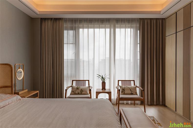 在原始布局上打通廚房、餐廳和茶室,室內(nèi)設計師以半隔斷和玻璃推拉門拓寬視野和空間層面;以古代空窗設計讓幾個空間相互滲透,將景致融為一體,增加了景深,頗有深邃、優(yōu)美的庭院意境;室內(nèi)設計師主臥收回陽臺,橫向縱壓縮衛(wèi)生間,合理規(guī)劃臥室的實際使用面積;儲物室做生活物資收納,其他柜體都選用原木定制,自然實用。