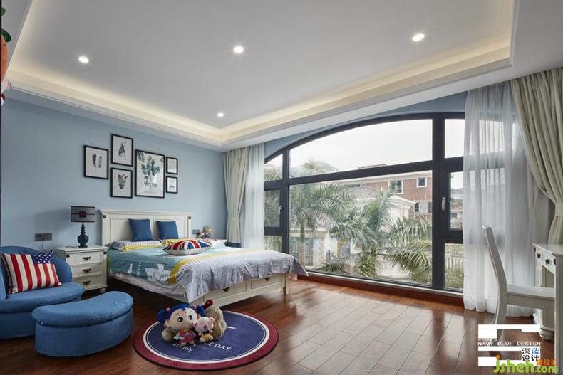 男孩房以藍色為主調,寬敞明亮,業(yè)主姐姐很貼心的給兩個寶貝都添置了小沙發(fā)小地毯。雖有一起活動的空間,但在自己的房間里,也一樣可以學習、休息,玩耍。