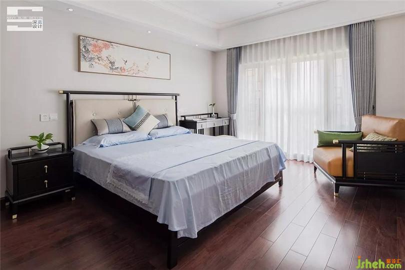 灰藍(lán)色窗簾和床品令臥室空間看起來更干凈、素雅,加入顏色和輪廓各有異趣的扶手椅,表現(xiàn)出精英階層含蓄、高雅的生活品質(zhì)。