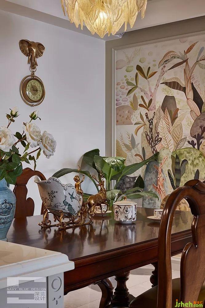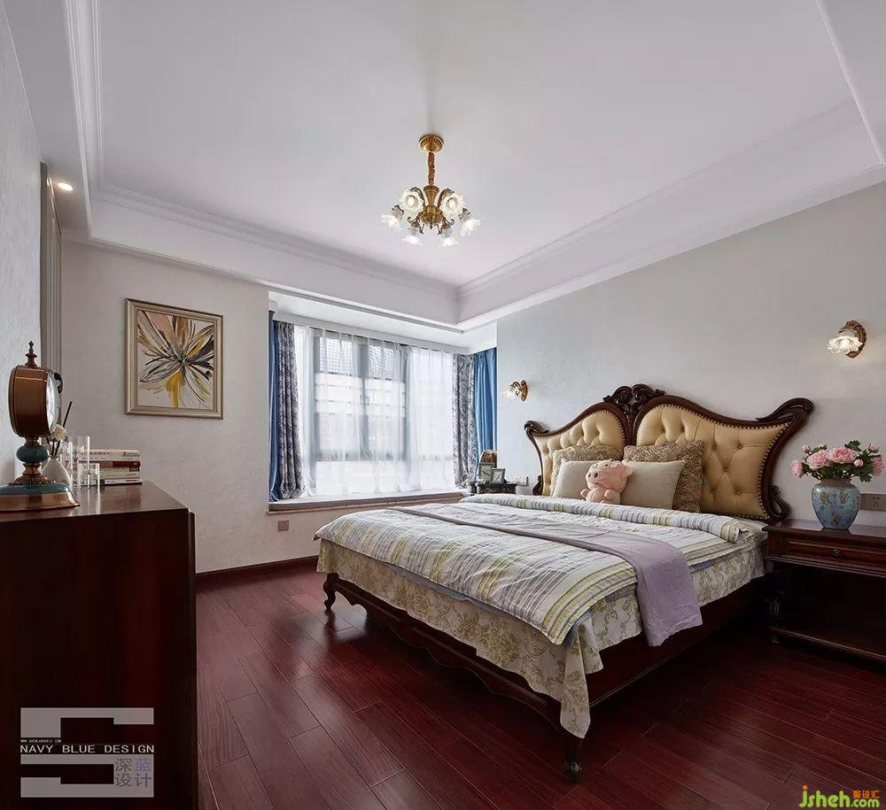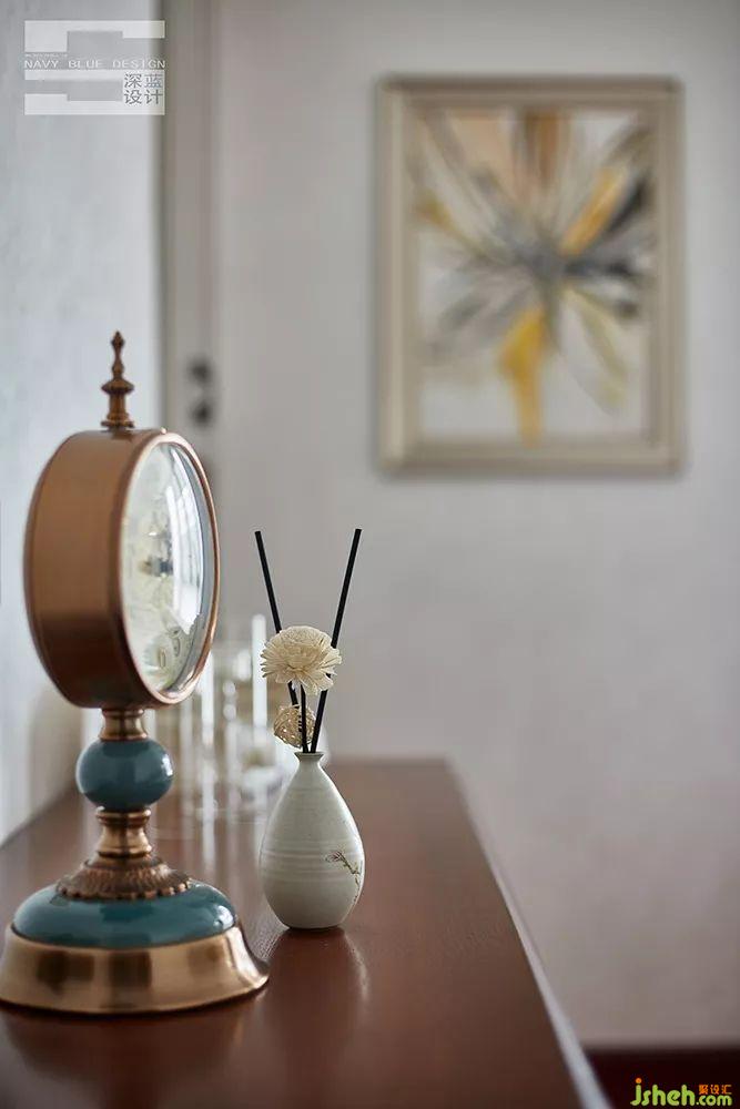 臥室大面積的留白勾勒出素雅輕柔的睡眠空間,掩映其中的美式裝飾,或包布床,或掛畫,或時(shí)鐘,或花瓶,更顯美觀優(yōu)雅。
