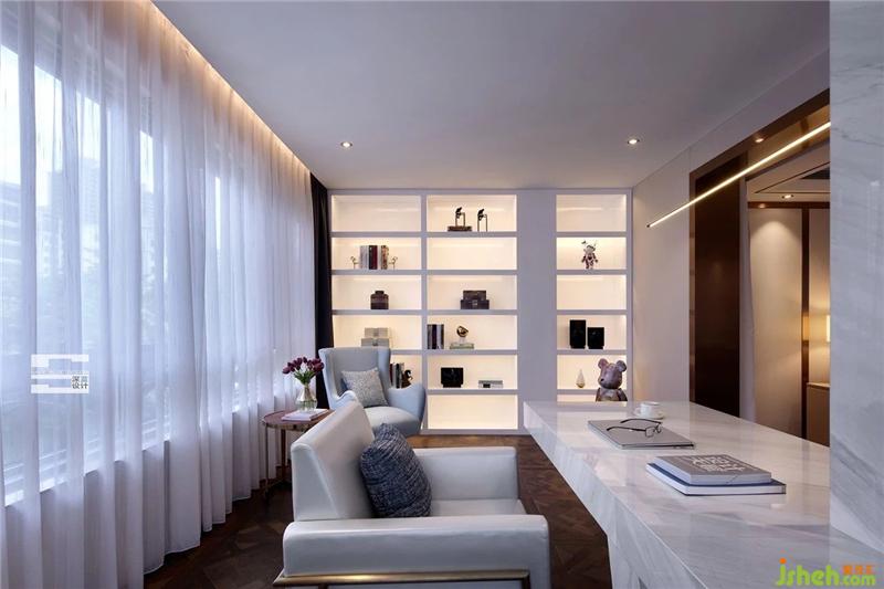 就像這個(gè)臥室,延伸出的小書房,簡(jiǎn)潔的家具包裹著材質(zhì)、紋理、觸感的細(xì)節(jié),無不表達(dá)出生活品質(zhì)的追求,可以靜坐窗邊聽雨,也可以品酒讀書,感受生活的質(zhì)感在指尖流淌。