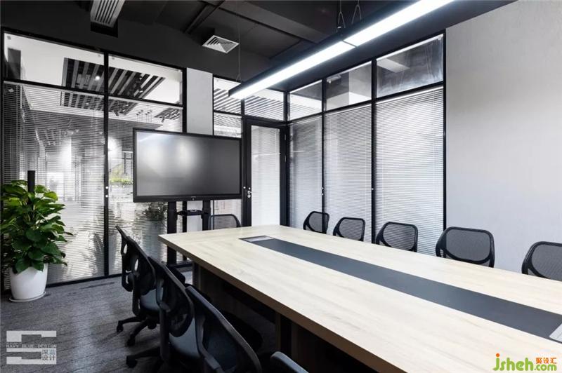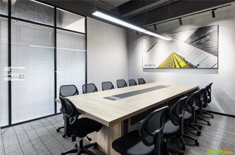 會(huì)議室應(yīng)該是最耗費(fèi)精力的區(qū)域了,承擔(dān)著公司一起開大小會(huì)議的作用,所以設(shè)計(jì)師用玻璃門和折疊百葉進(jìn)行分隔,營造一個(gè)安靜、隱蔽的空間;墻壁上的裝飾畫起到點(diǎn)睛之筆作用,仔細(xì)看,會(huì)發(fā)現(xiàn)公司的名字就在其中。