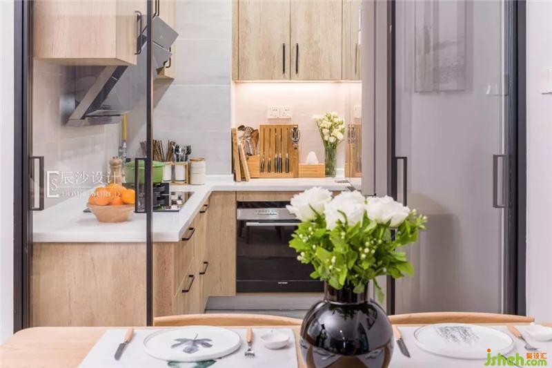 整個(gè)空間唯一改動(dòng)的地方是將廚房與生活陽(yáng)臺(tái)打通,增加了廚房的通透性和收納空間。