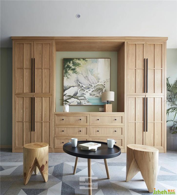 綠色的墻面搭配木色的柜子、茶幾、木凳子,進(jìn)門便是一股清新氣息撲面而來,讓人心曠神怡。室內(nèi)設(shè)計(jì)師