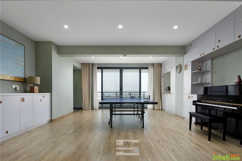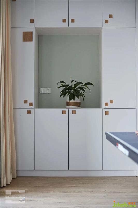 擁有健康的身體才是王道,回到家也不能松懈呀。在家打打乒乓球,既可健身強體、緩解壓力,也能和家人一起分享;我們賦予健身區(qū)娛樂性和功能性,兩邊是收納柜,滿足家里的收納需求。