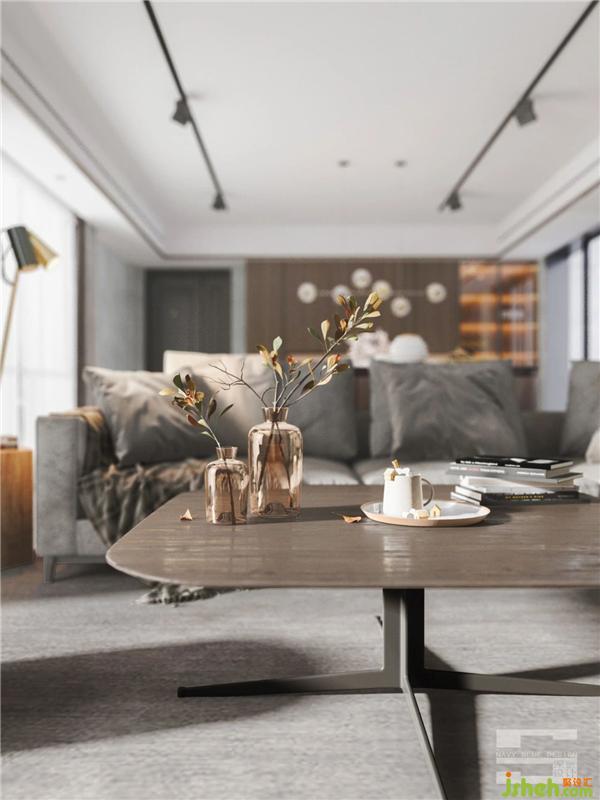 空間的主色調(diào)以淺灰色為基調(diào),深深淺淺的咖啡色以各種形式穿插于其中,兩者相輔相成,簡約的空間里散發(fā)出陣陣暖流,為空間營造一種高貴優(yōu)雅、柔和溫暖。室內(nèi)設(shè)計(jì)師
