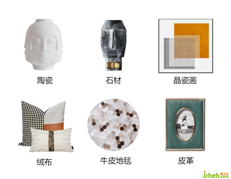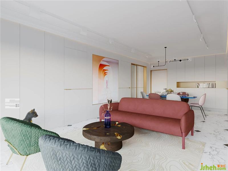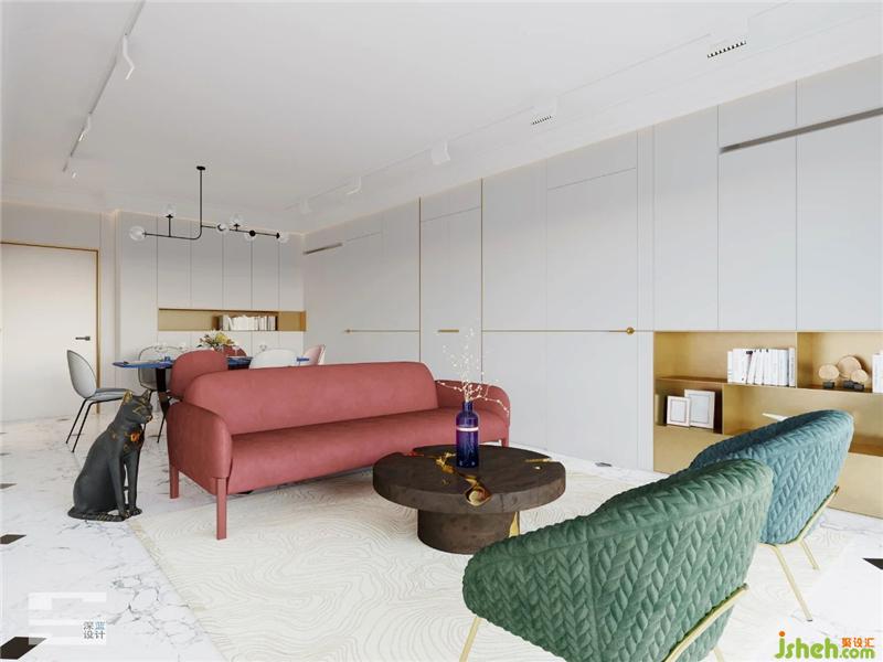 The space is dominated by large areas of light colors. In terms of material selection, we consider gypsum lines, metal and leather to enhance the brightness of the whole space. Horse hair and flannelette, when they are added with cloth of special technology, they will add a sense of value to the whole space, and to a certain extent, will add a breath of life to the space.