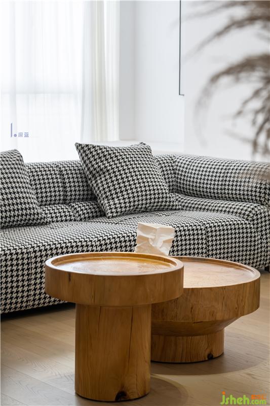 家居設計從掛畫到茶幾配飾,給人一種 “自然原始感“和現(xiàn)代感視覺沖突的美。