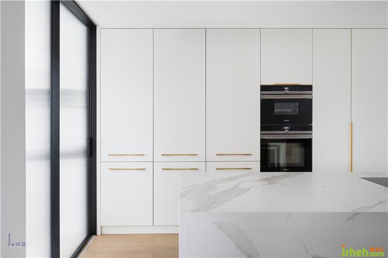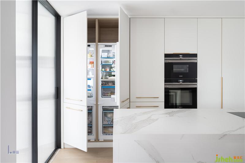 西廚柜體結(jié)合嵌入式冰箱,即實用又多了整體感。