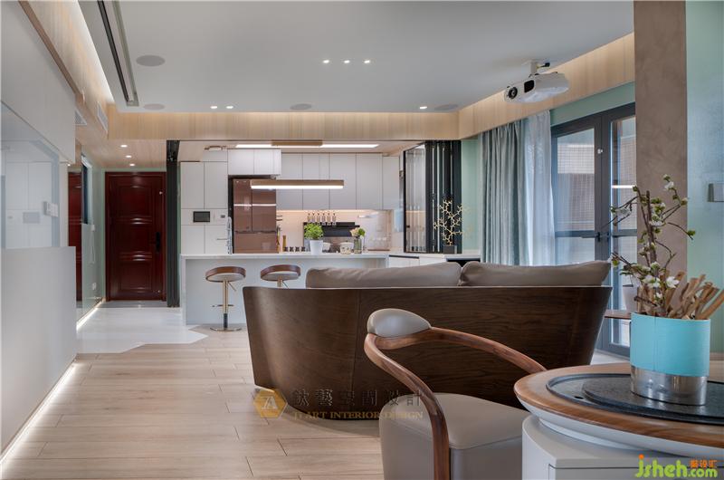 客廳、餐廳與廚房開敞連貫的設(shè)計(jì),打造沒(méi)有界限的視野,讓記憶的容量更加飽滿鮮明,讓家的溫度更加真實(shí)溫暖。