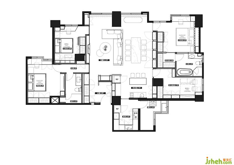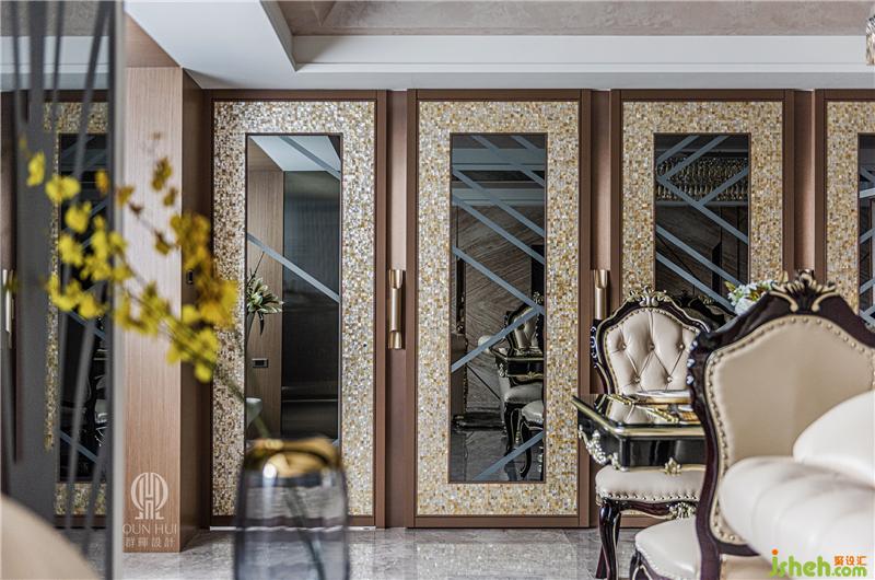 從迷你的8坪到寬闊的80坪,經(jīng)手過各式住商空間的設(shè)計(jì)總監(jiān) 汪暉哲、許家榮 ,在本案中,與創(chuàng)意總監(jiān) 張瑞克 一同執(zhí)筆,處理這座位于密集住宅區(qū)的48坪中型住宅,以簡(jiǎn)練線條精心重塑裝飾藝術(shù)的精致風(fēng)格,搭配鍍鈦茶鏡,及其他天然貝類材料,展現(xiàn)出耳目一新的視覺效果,形塑出貴氣宅邸的豐富表情;并在近似的環(huán)境色系中,巧妙地變化場(chǎng)域色彩,為住家精心打理出醒目飽滿,卻未顯半分凌亂的優(yōu)雅裝扮,使生活在處變不驚的步伐中煥發(fā)絕美風(fēng)采,并加入藝術(shù)史中的裝飾時(shí)期元素,使得空間具有文化深度,而非膚淺的華麗。