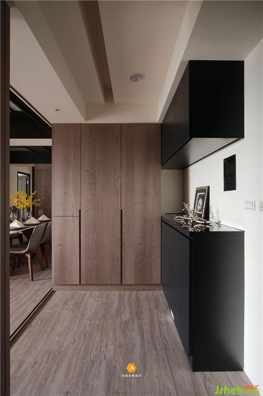 玄關處,設計師將以往華而不實的屏風舍棄,轉(zhuǎn)而以更加實用的柜體作為屏風,一方面解決進門便看到客廳全貌的尷尬之境,另一方面也提高了空間的收納能力,美觀與實用兩者合一;設計師還規(guī)劃了落塵區(qū),將歸家所帶回的塵土,止步于此,讓整個空間無時無刻都以最佳狀態(tài)迎接業(yè)主的回歸。
