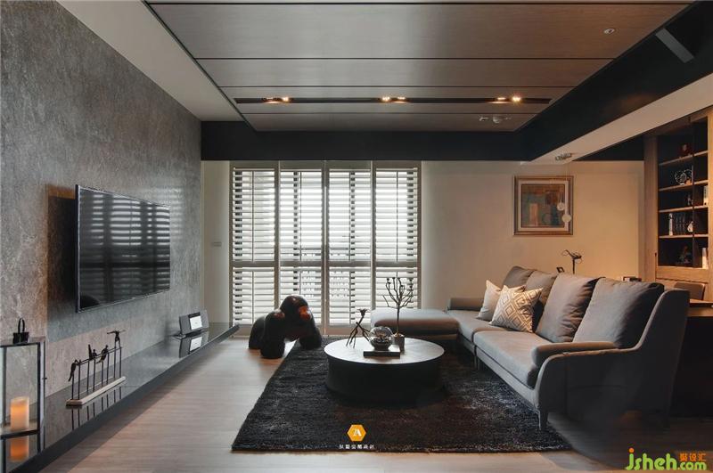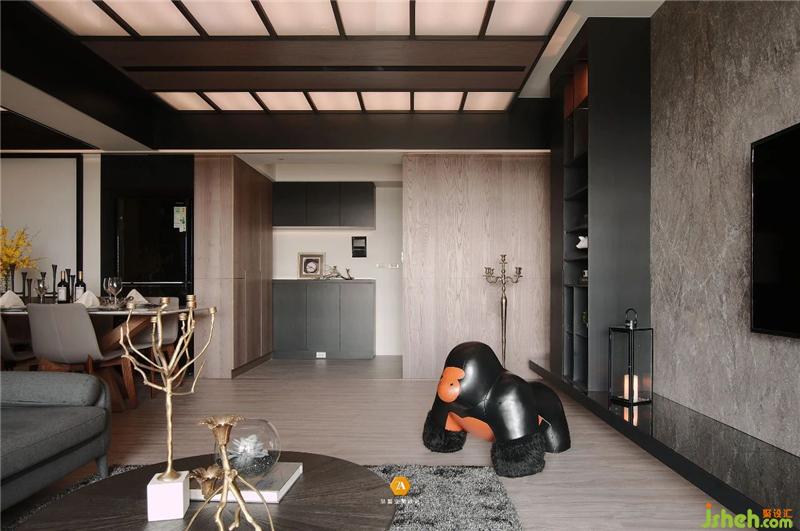緊接著來到客廳,首先將視線吸引住的便是造型獨特的天花造型,以及時尚大氣的電視背景墻;天花以木質(zhì)地為主要飾面,搭配等分的玻璃格子造型和金屬勾勒,奠定了空間中的時尚意趣基調(diào),豐富了空間層次感;電視背景墻以大面石材建構,簡簡單單,與天花的多樣形成鮮明的對比,不僅讓視覺的感受多樣化,同時也讓空間充滿時尚簡約的氣息。