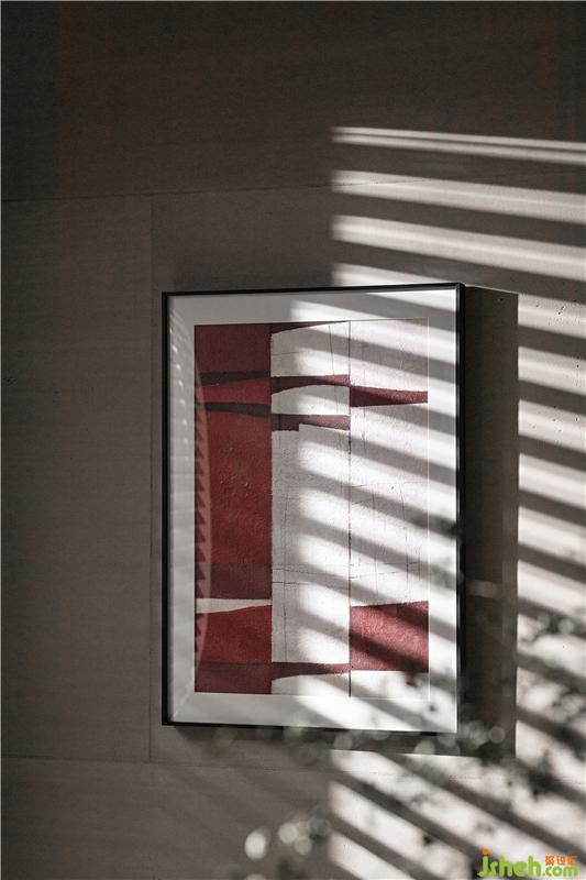 On the top of the bookcase device is the owner's personal collection, which fully reflects the outdoor natural scenery; the geometric art hanging on the wall brings the spirit of life into the space.
