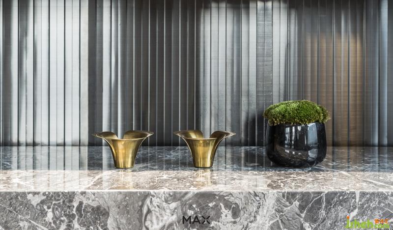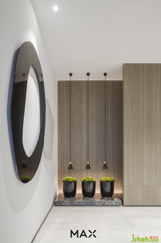 空間陳設(shè)上運(yùn)用了大量的藝術(shù)品,室內(nèi)設(shè)計(jì)師對(duì)”圓”這個(gè)圓形特別迷戀,不規(guī)則圓形、半圓弧作為常用的形態(tài)出現(xiàn),弧線能夠中和金屬的重量感。