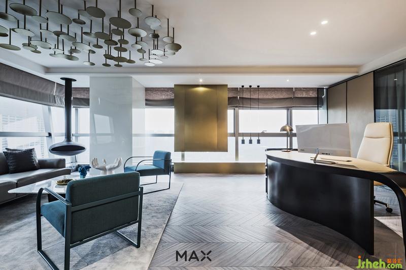 放望整個(gè)總經(jīng)理辦公室,一抹靛藍(lán)在中央處形式點(diǎn)狀散開(kāi),巧妙地與環(huán)境對(duì)話。