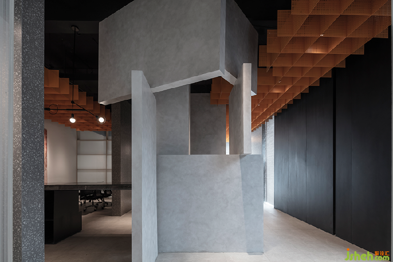 與水磨石 混泥土材質(zhì)肌理形成對比