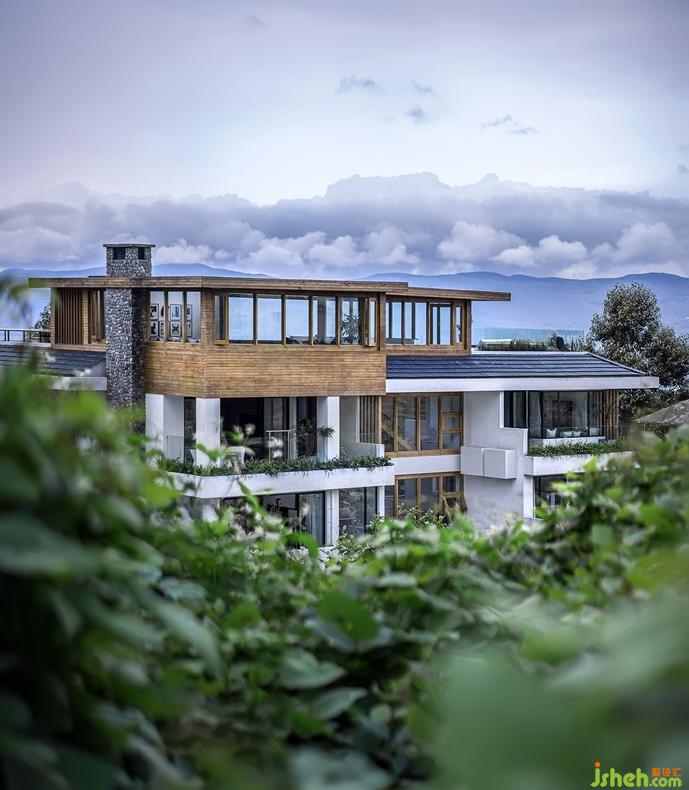 As the second public space, the semi-opened space on the top pushed the building to another climax, where the designers designed the coffee bar, communication area and sightseeing as a whole. The elaborate windows "cut" and "borrow" the sceneries of sunrise and sunset in Cangshan and Erhai lake. People enjoy their own leisure quietly, the book bar and terrace are close to the pool, that is a true 360 ° viewing platform. The huge pool becomes a delicate continuation of the Erhai Lake and floating clouds like a mirror, it leads people's vision away, melting in the uncertain daylight.