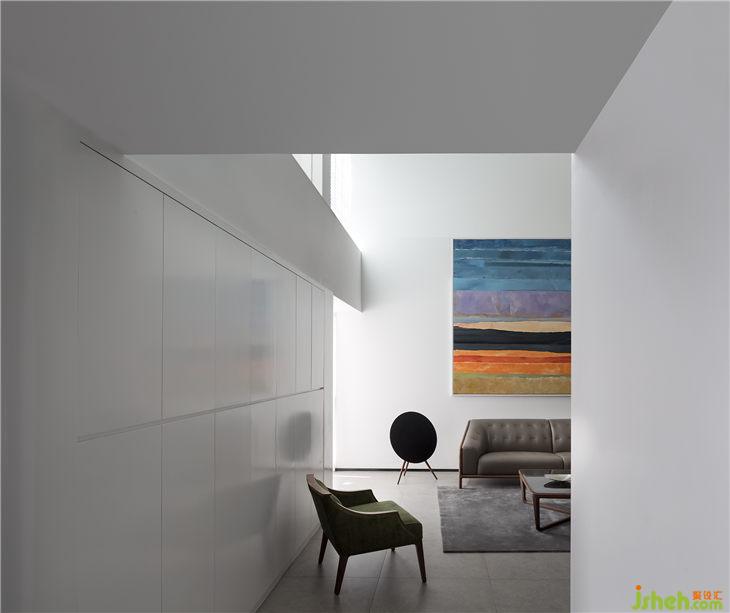 在整體結(jié)構(gòu)設(shè)計(jì)上,以簡(jiǎn)單的形式和布局。在原31層公衛(wèi)與32層露臺(tái)的位置以一座新建的樓梯連接,將兩個(gè)完全不同的上下層空間轉(zhuǎn)化為一個(gè)彼此聯(lián)系的整體。樓梯上方加建一個(gè)陽(yáng)光房,同時(shí)打開(kāi)客廳與樓梯間的關(guān)系,采用透明的落地玻璃,干凈整潔,將自然光線引入客廳,同時(shí)拉開(kāi)了客廳與臥室之間的關(guān)系,32層是主人房與其配套的休閑空間,營(yíng)造出一種獨(dú)特的個(gè)人體驗(yàn)。