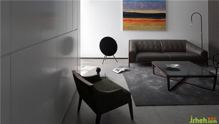 材料的用色體現(xiàn)出黑白灰的魅力。家具中皮的質(zhì)感與胡桃木質(zhì)感傳遞著舒適與溫度