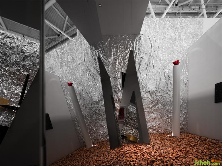 Considering the dense crowd of visitors, we utilized triangular structures to segment the space, to create a free yet directive setting. The goal was to guide the smooth flow of visitors and create a free visiting route with a rich sense of rhythm.