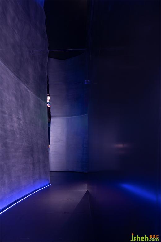 空間察覺(jué)有融入爵士和朋克經(jīng)典的藍(lán)調(diào),但設(shè)計(jì)的表露上并沒(méi)有刻意強(qiáng)調(diào)爵士與朋克的元素,藝術(shù)餐廳設(shè)計(jì)而是通過(guò)畫(huà)面的構(gòu)成和內(nèi)在光色節(jié)奏營(yíng)造出一種冷調(diào)新潮的獨(dú)特氣質(zhì)。游離的墻體與迷離的光圈交界。