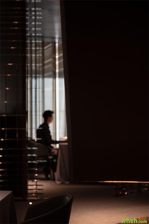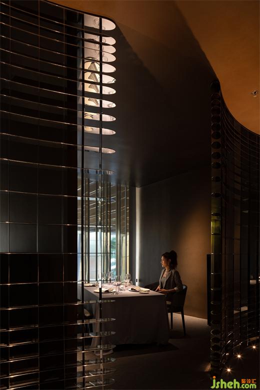 空間處于一種半封閉的狀態(tài),強(qiáng)調(diào)空間私密性的同時,餐廳設(shè)計讓人在空間中游走時產(chǎn)生不同的場景與情緒,幽暗的光環(huán)境強(qiáng)調(diào)了人在空間的事件才是設(shè)計核心。一種新的享樂主義。