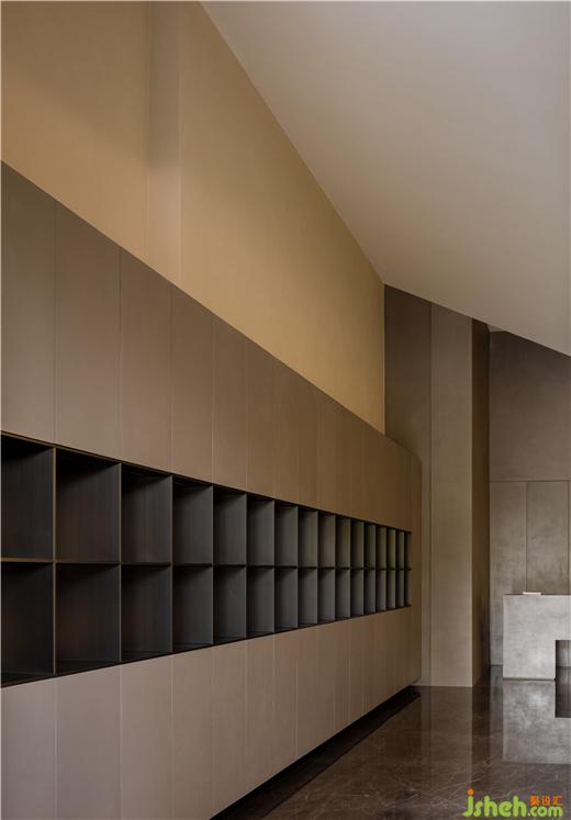 展示館設計在不規(guī)則幾何體塊的建筑輪廓內(nèi),“形”與“形”之間以獨立的形式分離感,讓相對小的場地產(chǎn)生更加具有沖擊力的室內(nèi)空間全景。