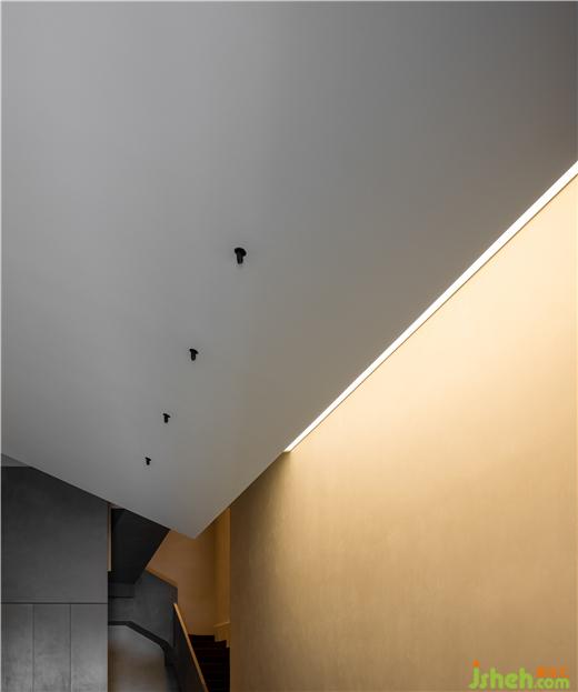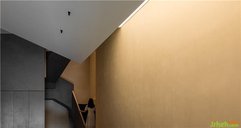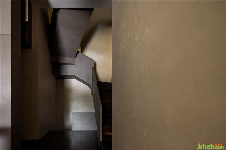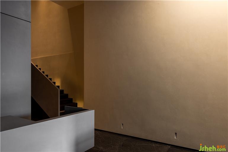一層空間功能主要為產(chǎn)品展陳,結構體的表達側重于更加具有力量感。看似分離的布局形式又連貫著一種整體感知的牽引,自由序列的建造邏輯賦予空間以表面沖突又具有強烈和諧感的圍合形態(tài)。