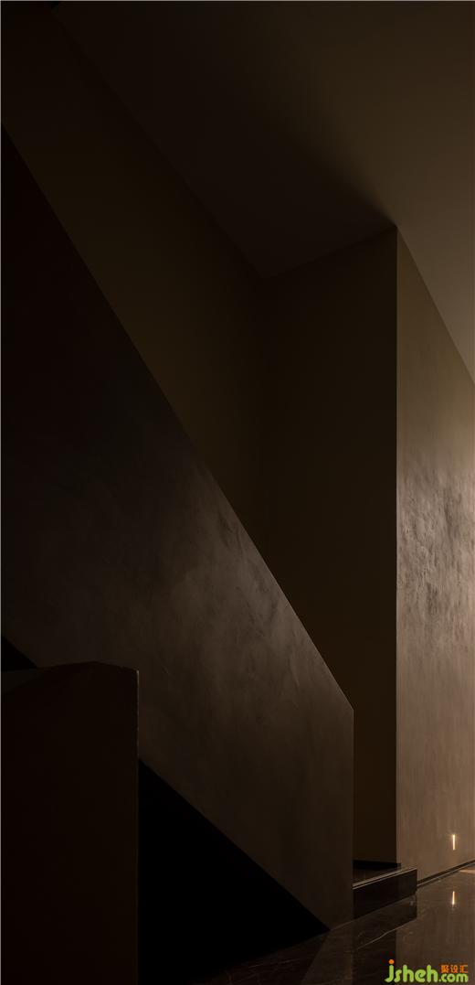 Walls clad in stone-texture paint contrast with the metal materials, injecting a sense of luxury into the comfortable space. Soft light accentuates the sense of weight in the space. The "floating" blocks strike a balance between heaviness and lightness, adding fun to the space.