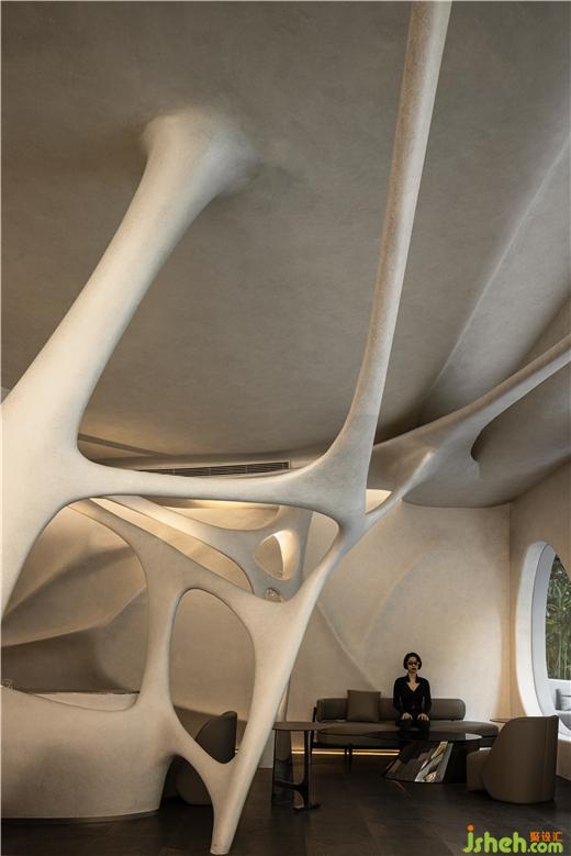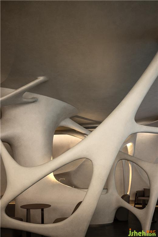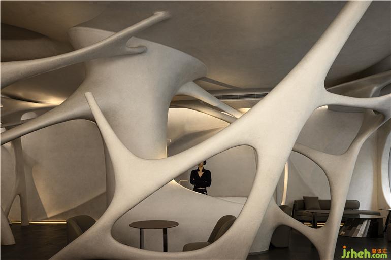 既有的形式放大化。我們看到的是一個復(fù)雜的空間場域,一個復(fù)雜的設(shè)計元素,每一個數(shù)據(jù)都存在差異化,他們之前沒有復(fù)刻,這也是項目設(shè)計中激進的片刻,第一次以這樣的方式進行空間的呈現(xiàn)。