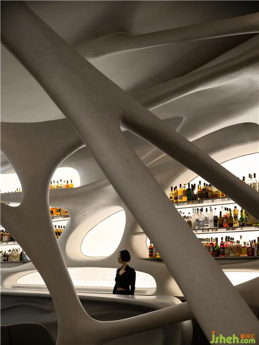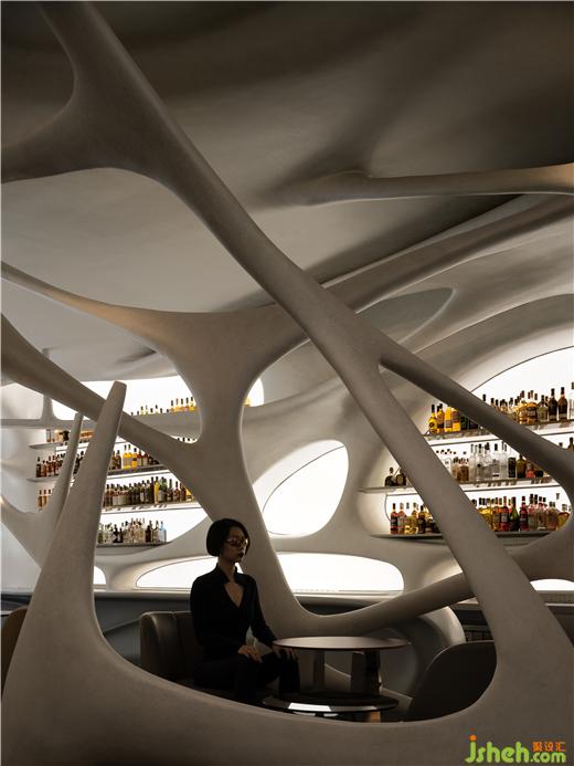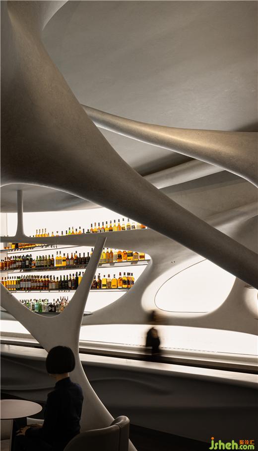 The entire space is internally free and can function in different scenarios. The sense offluidityof the space creates a dialogue with people and forms a dynamic scene. The form of the space is full of imagination: it can be a cave, a space capsule, or a neuron... It can flexibly switch between the leisure of a cafe during the day and the excitement of a whiskey bar at night.
