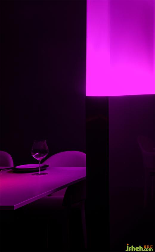 藝術(shù)餐廳設(shè)計(jì)空間通過(guò)畫(huà)面的構(gòu)成和內(nèi)在光色節(jié)奏營(yíng)造出一種冷調(diào)新潮的獨(dú)特氣質(zhì)。理性的墻體與迷離的光圈交界,在人的參與下,產(chǎn)生不同故事的場(chǎng)景感,這種事件性是艾克階段性的嘗試,是一種可度量的空間邏輯。