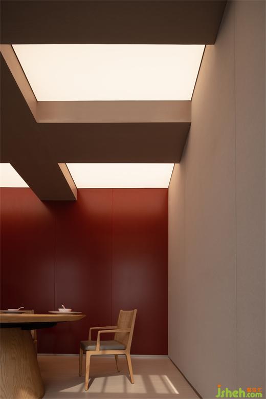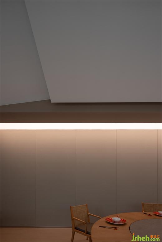 二樓進(jìn)入我們視野的是前臺(tái)接待與水吧功能結(jié)合的多功能服務(wù)區(qū),深圳餐廳設(shè)計(jì)開放式的露臺(tái)坐擁人間煙火,吧臺(tái)頂部用當(dāng)代的幾何造型與手工編制的家具及戶外家居編織質(zhì)感的手藝進(jìn)行碰撞,幾何符號圍合出了讓人具有探索欲望的空間情境。笑看清淺流年,曲徑通幽,張揚(yáng)且含蓄,一場東西方美學(xué)與哲學(xué)的碰撞。