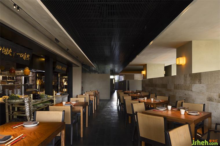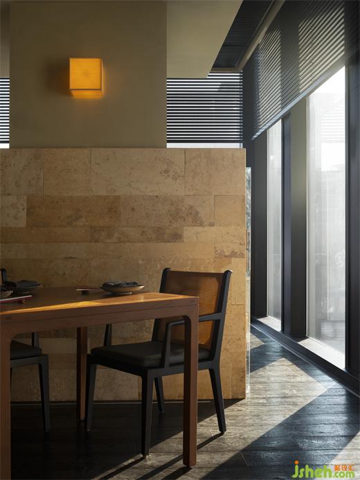 廊道的轉(zhuǎn)折關(guān)系,移步異景,竹子的元素通過(guò)玻璃進(jìn)行延伸,餐廳設(shè)計(jì)讓用餐的主體空間隱藏于空間內(nèi)部,遠(yuǎn)處的餐廳氛圍讓人產(chǎn)生更加強(qiáng)烈的求知愿望,狹小的廊道讓空間產(chǎn)生強(qiáng)烈的神秘色彩,以小見(jiàn)大的空間邏輯,讓空間的窺探感感覺(jué)強(qiáng)烈,一種不經(jīng)意的設(shè)計(jì)邏輯在空間中不斷的強(qiáng)調(diào)與重復(fù),形成了一種隱晦的空間語(yǔ)境。