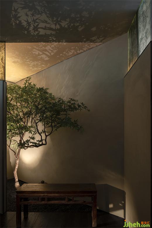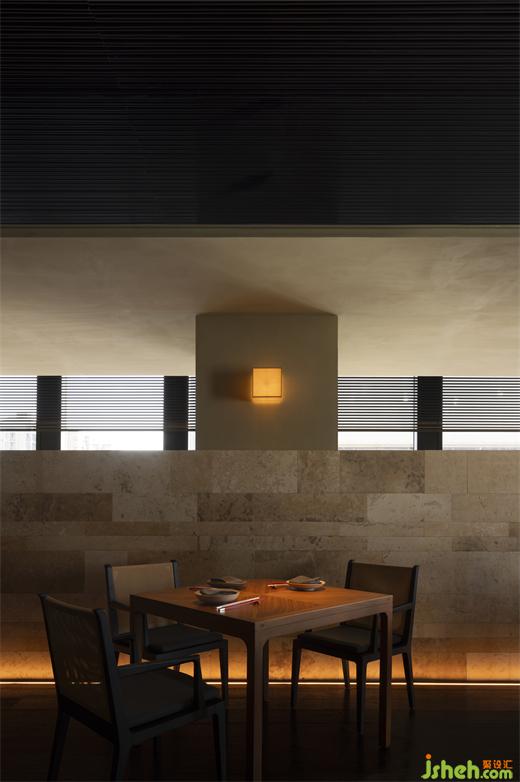 窗外的美景,空氣與偷進(jìn)來的陽光,在木格柵的作用下,形成了斑駁的光影,餐廳設(shè)計(jì)讓空間充滿了呼吸感,空間借用自然,在時間的推移中,空間不斷在變化情緒,形成了一個會呼吸的空間。