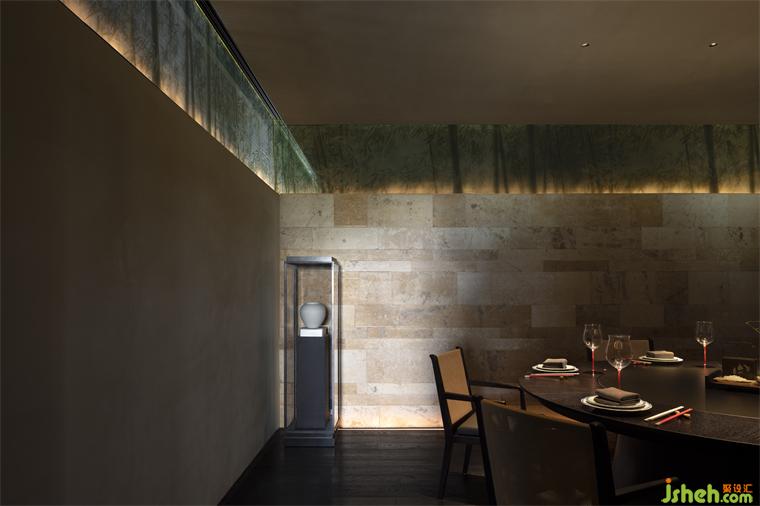 東方情緒,向往自然與文化,商場的空間環(huán)境讓整體的環(huán)境有所缺失,錯位的高墻與植物有效的營造了空間的戶外延伸感,形成了一種正確的錯覺,舊物在空間中以一種低調(diào)的姿態(tài),安靜的融入空間中,不爭不搶,與空間、食物等事件互相包容,餐廳設計營造一個友好的空間場域。