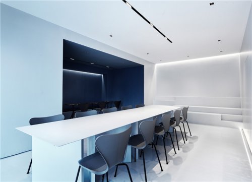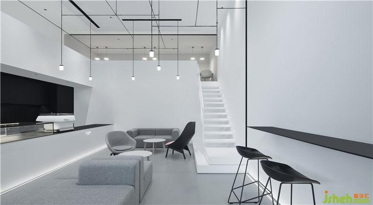 主空間由3個完整的黑、白、灰盒子組成,黑色沉穩(wěn)、白色舒爽、凹陷的灰色客座區(qū)自帶故事屬性,結(jié)構(gòu)穿插,顏色變幻,不僅僅增加空間的層次感,也使得人的視覺落腳點(diǎn)隨移動而變化,妙趣橫生。