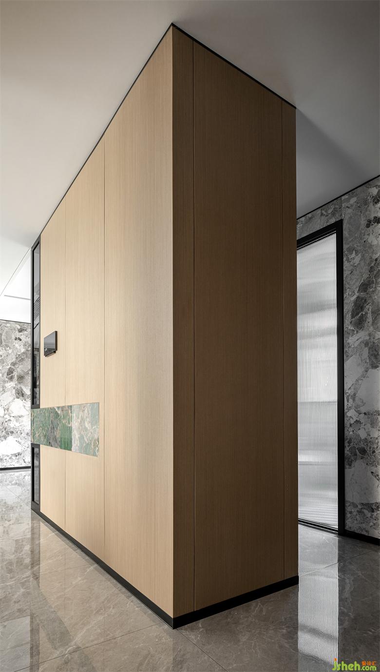 The simple and elegant log color is an important medium for communicating the movement of the space, and it can be widely used in the space. Standing on the marble floor, it forms a very distinct visual contrast, a high degree of integration of modernity and nature, which is undoubtedly revealed with a low-key attitude.
