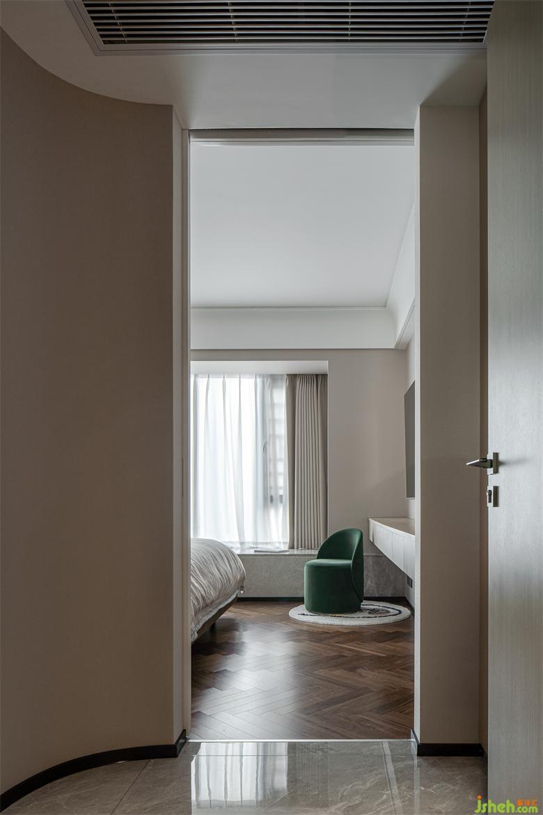 Along the graceful arc, the master bedroom, which integrates privacy and comfort, looms in the depths of the space. The bedroom has a comfortable space mission. Warm, healing and romantic temperament is gathered here, and the most comfortable and important scenes of life are stored here. The sunshine whispers, the breeze hums, and it slowly tells the true meaning of life.