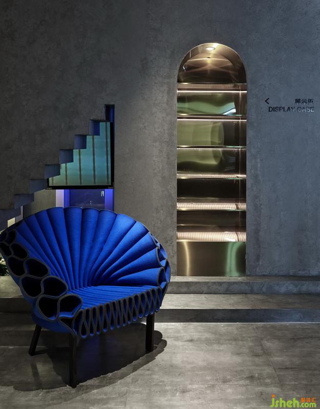 大量的性冷淡高級(jí)灰貫穿設(shè)計(jì)始終,將高端氣質(zhì)推高到極致。然后,猛地,萬(wàn)灰叢中一點(diǎn)藍(lán),引入一種好萊塢式的大牌感和神秘感,讓人眼前一亮。